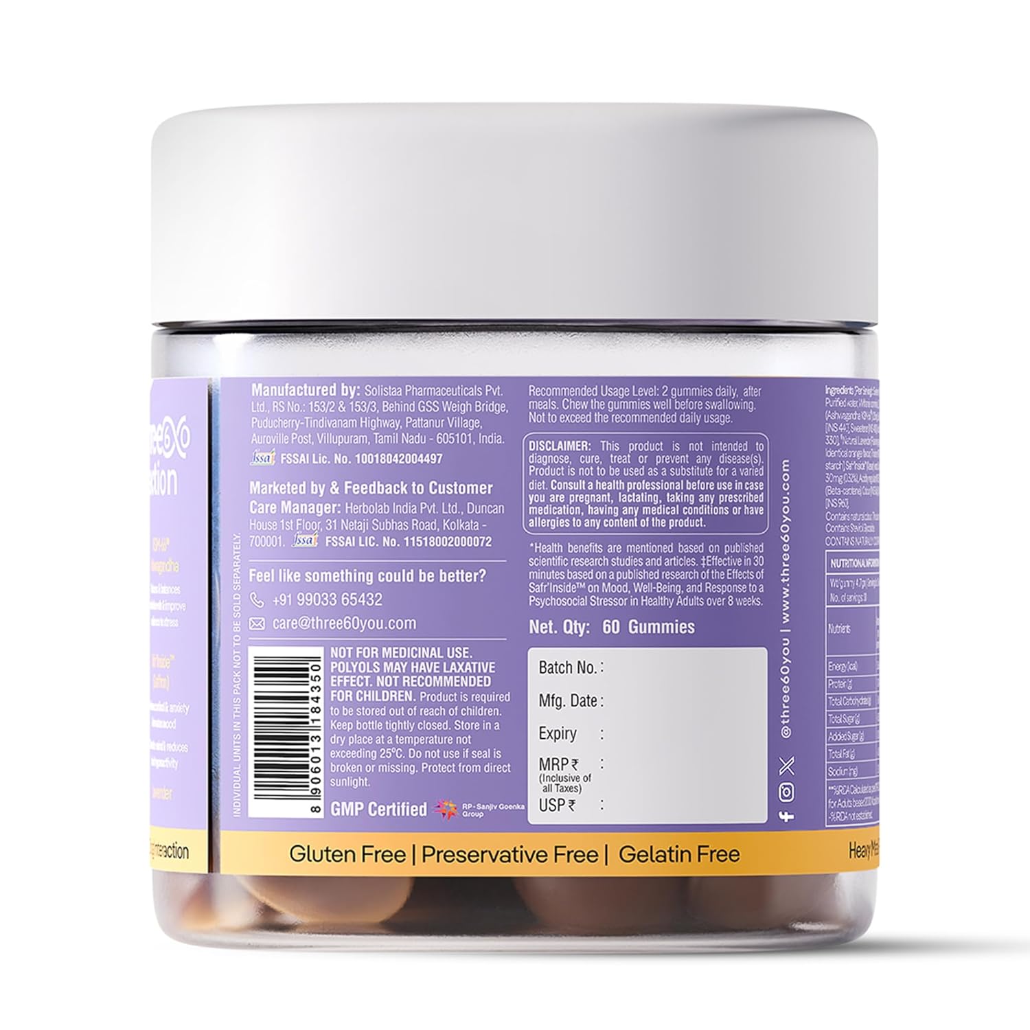 three60 STRESS RELIEF Gummies |Reduces Stress & Cortisol Levels |Helps in Anxiety Relief & Calms Mind |KSM-66® Ashwagandha, Safr’InsideTM (Saffron), Lavender|Non-Habit Forming|30 Stress Relief Gummies