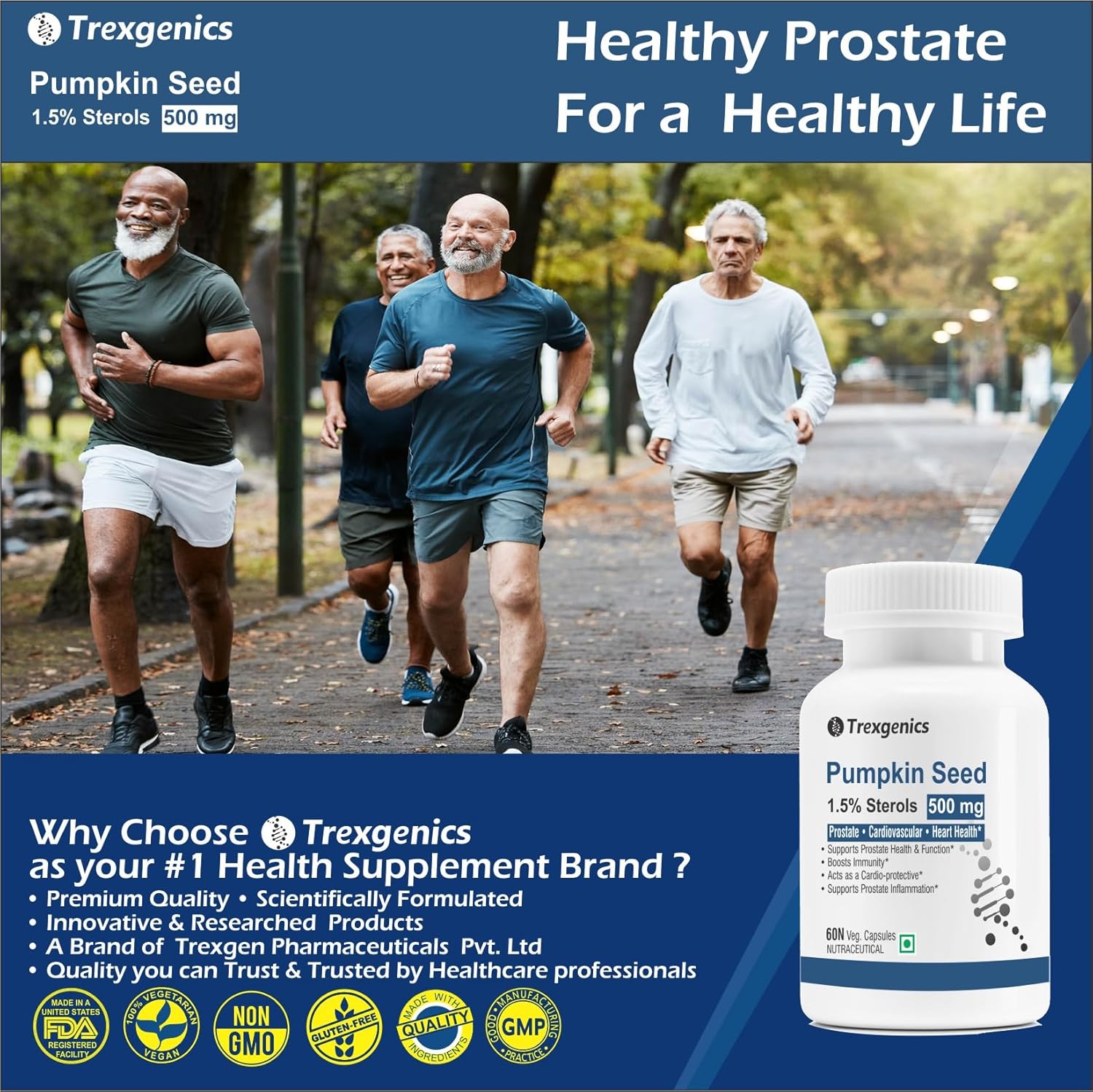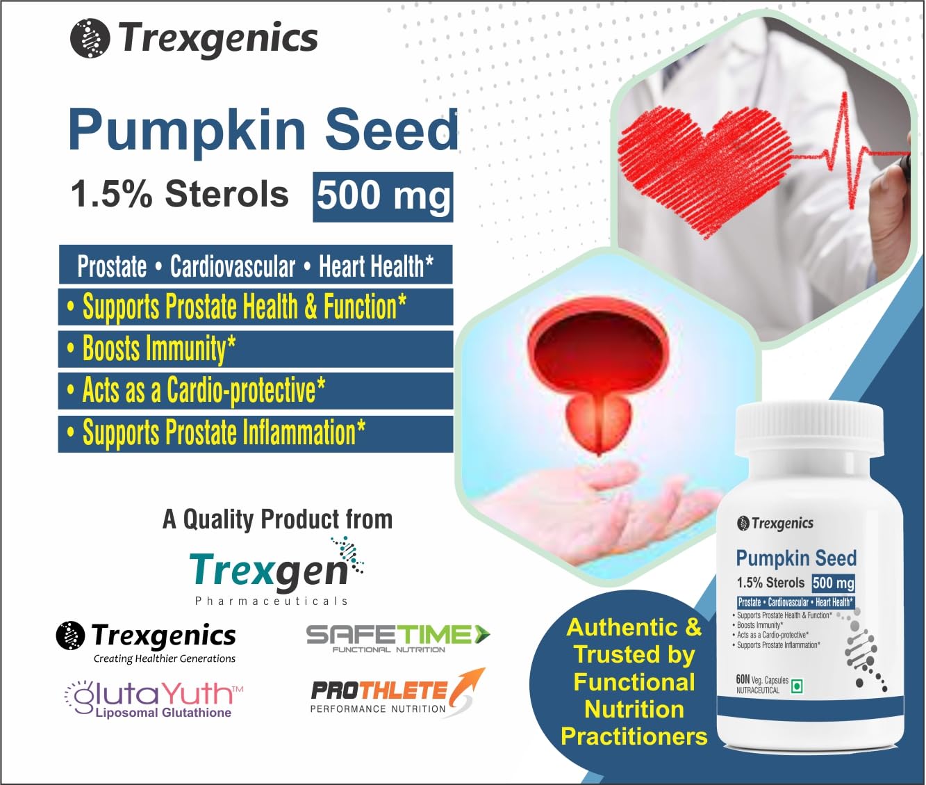 - Trexgenics Pumpkin seed extract 500 mg is a natural support for Prostate, BPH, Urinary tract Health.