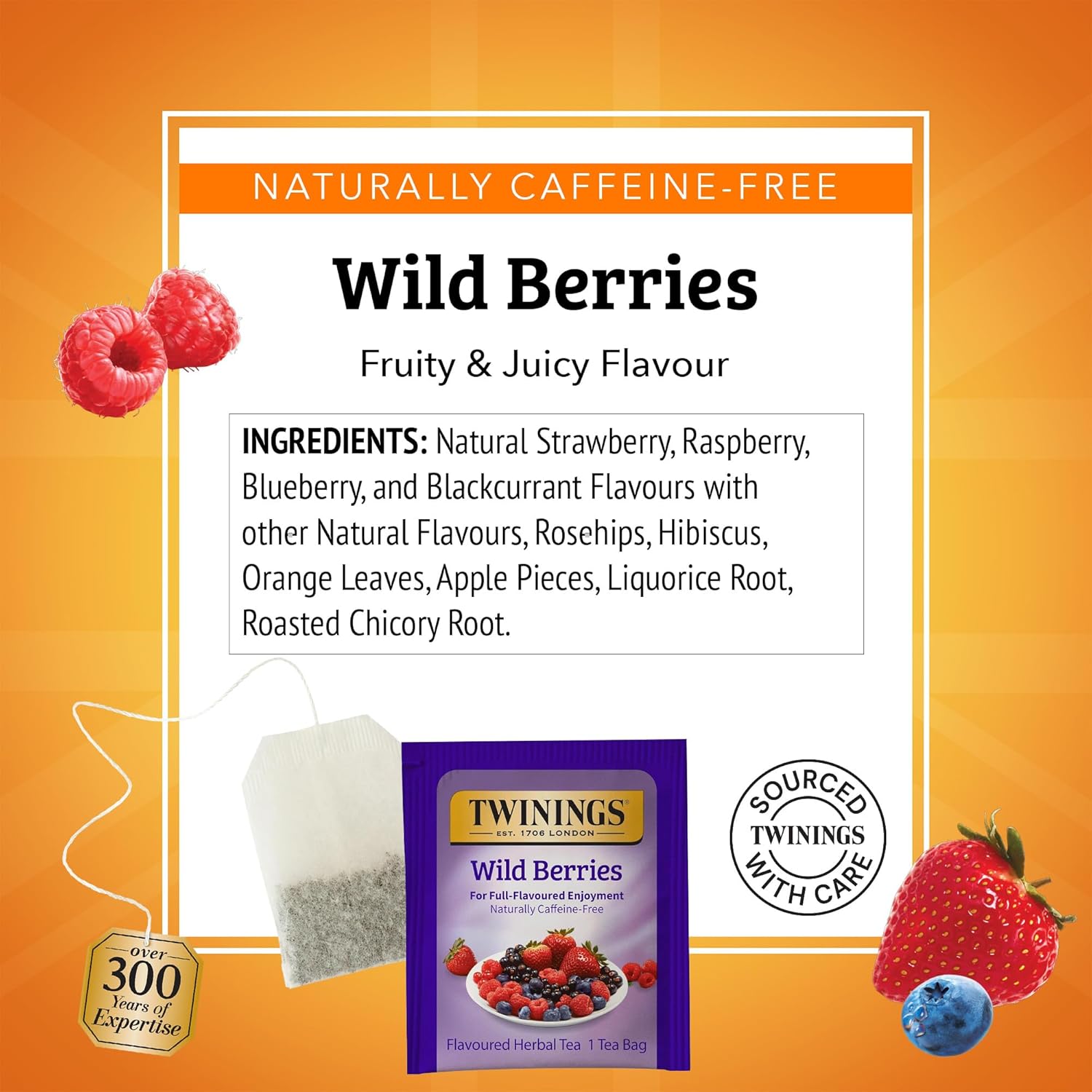 - NATURALLY CAFFEINE FREE: Herbal tea blended with luscious flavours of raspberries, strawberries, blueberries and blackcurrants for a delicious tea with a fresh, fruity aroma and naturally sweet taste; 20 Count, Pack of 1