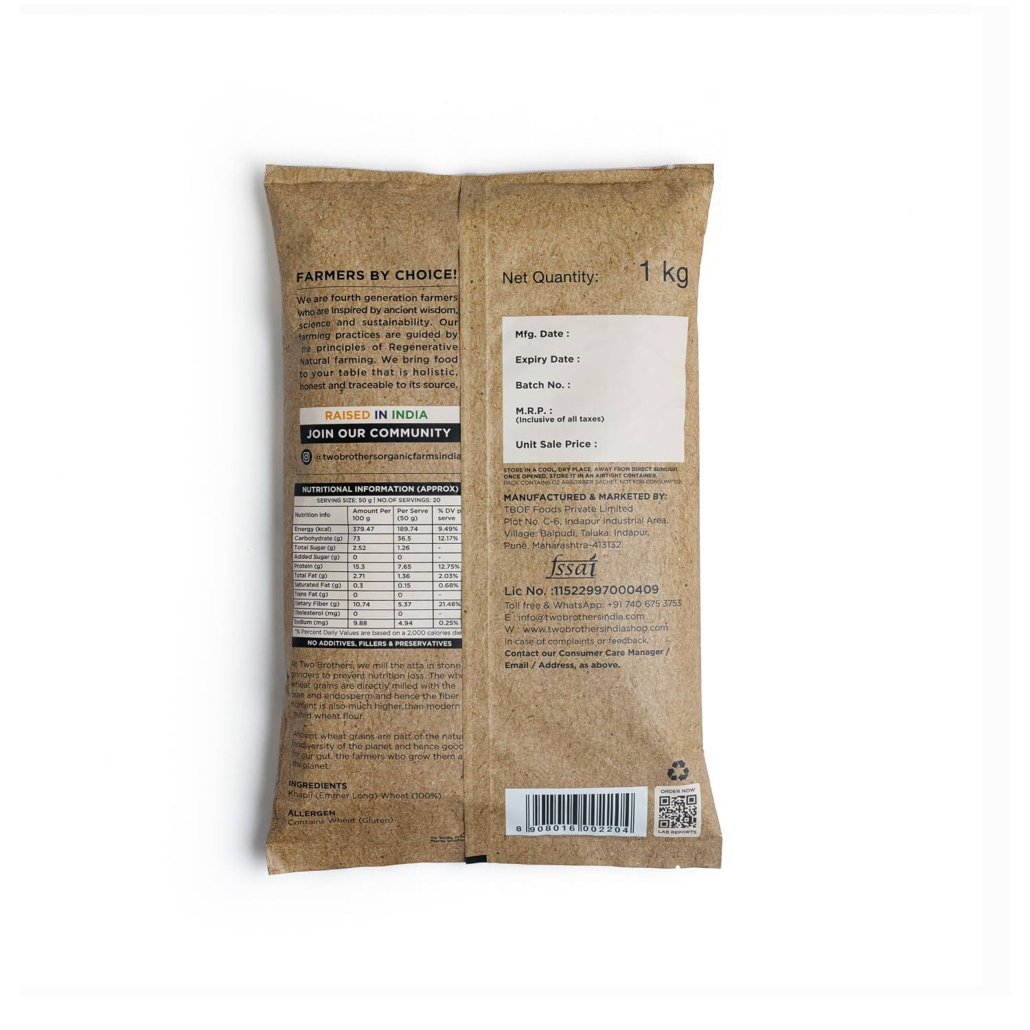 Two Brothers Organic Farms - Khapli Wheat Flour (1 kg) | High Dietary Fiber for Easy Digestion | Stoneground Emmer Wheat Flour | Khapli Atta