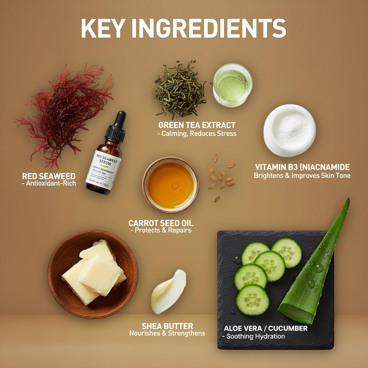 - NATURALLY HYDRATED SKIN: Ingredients like cocoa and red algae improve the moisture holding capacity of the skin. Natural hydration levels are essential to maintaining in dry skin.