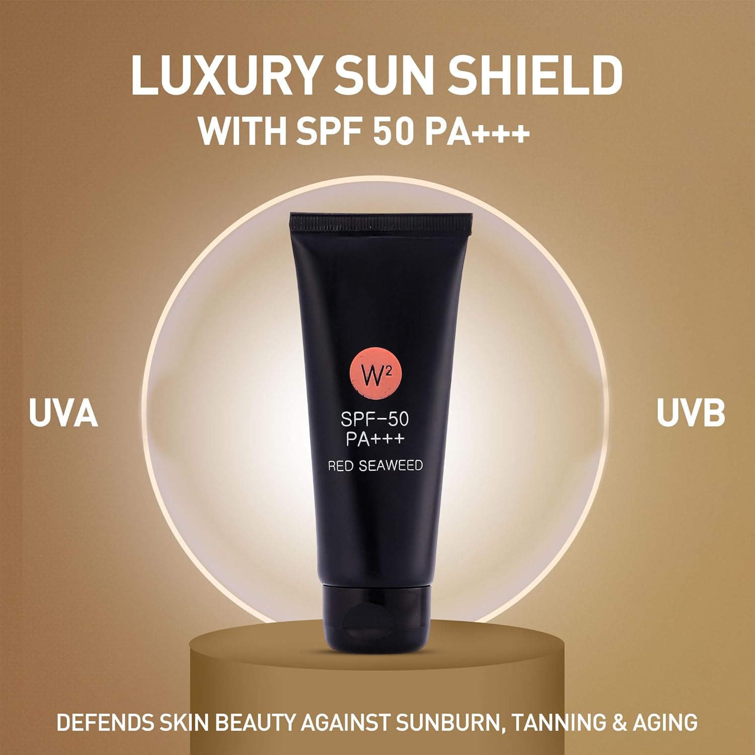 - UV & UF PROTECTION: W2 Why wait Spf 50 sunscreen with Red Sea Weed is the richest source of Phenol which creates a natural block against the harmful UV and UF rays of the sun