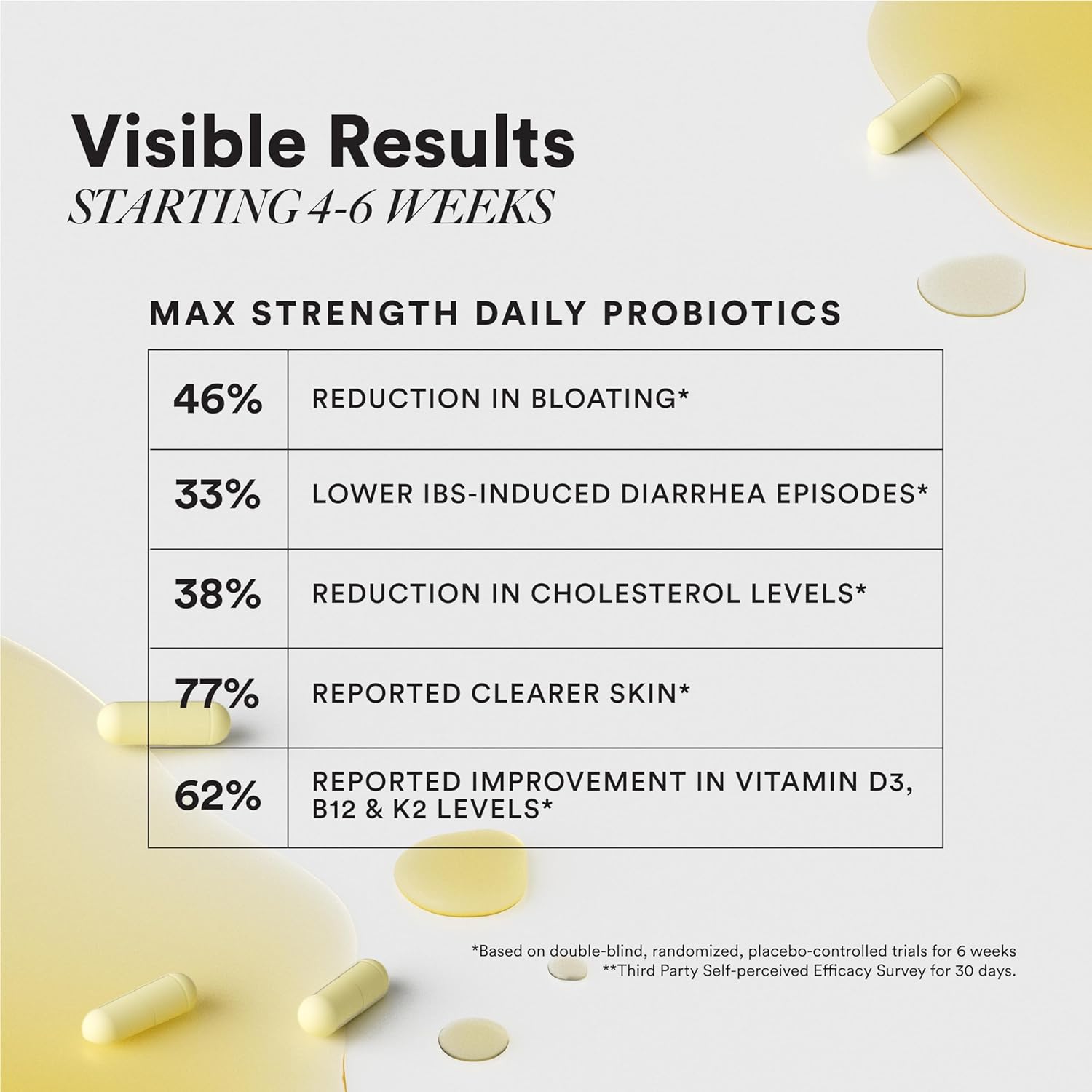 - CLINICALLY PROVEN STRAINS TO SUPPORT DIGESTIVE & RESTORE GUT HEALTH: Experience the power of our unique formulation of precise doses featuring strains from Lactobacillus, Bifidobacterium, & Streptococcus - clinically proven to reduce IBS symptoms by 33%, and repopulate the good bacteria in the gut. In a study, 91% of users reported improvement in indigestion within 6 weeks. These researched strains also alleviate gas and bloating for enhanced digestive comfort.