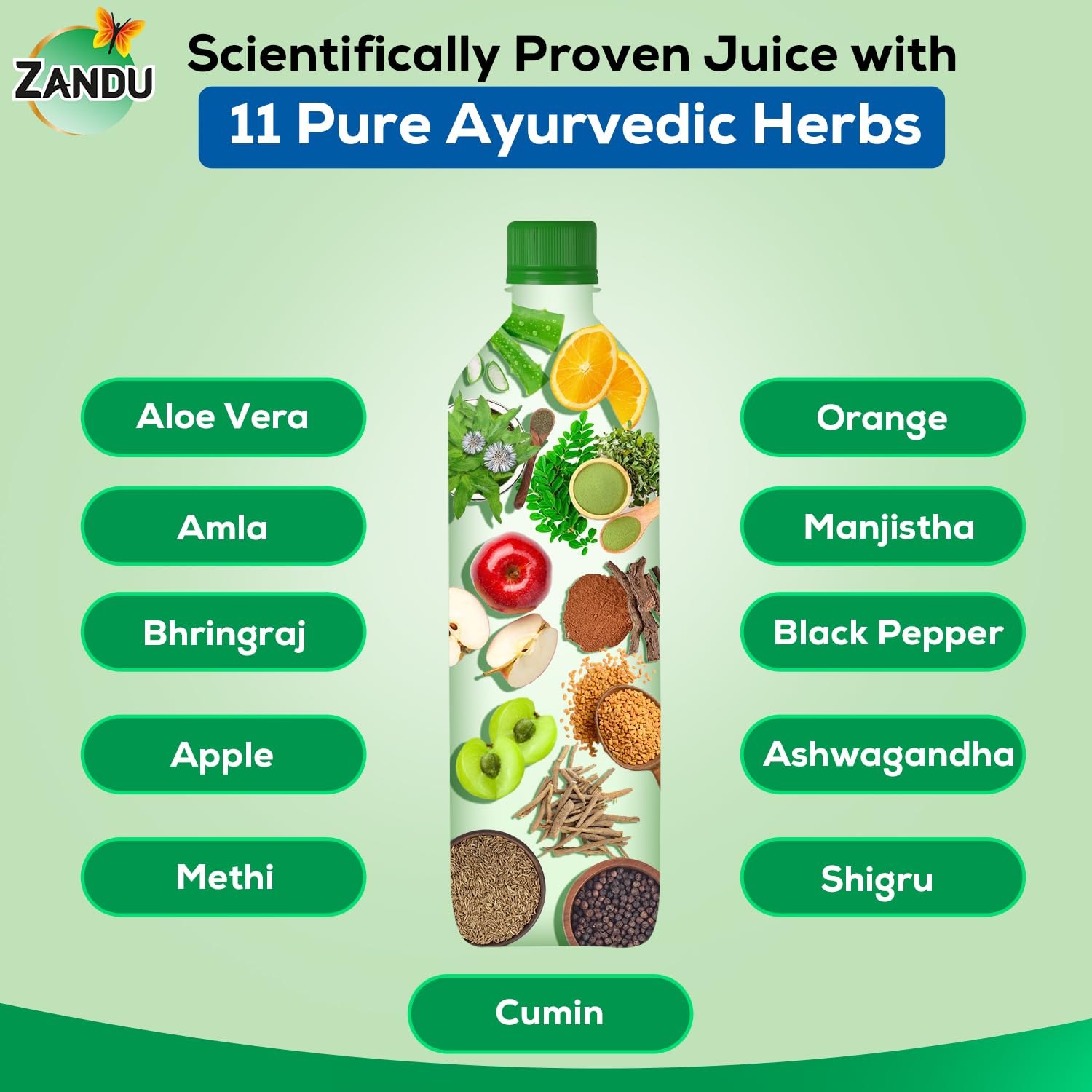 - Nourish Your Hair from Within: Ayurvedic ingredients of Zandu Hair Vitalizer Juice. Unlike external solutions like shampoo, oil etc, our unique juice formulation addresses hair concerns at the root for long-lasting results