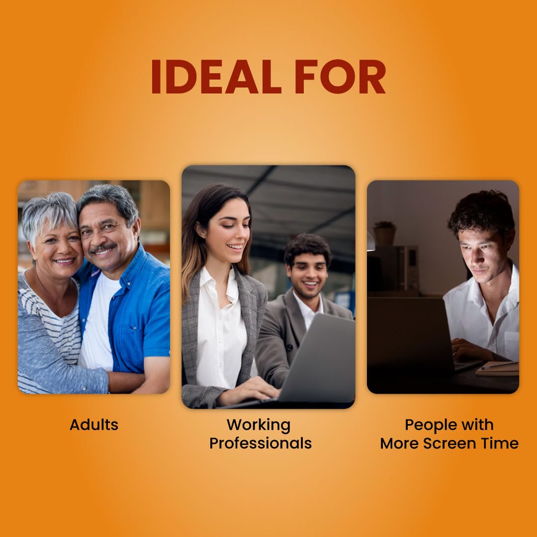 - 100% PLANT BASED INGREDIENTS : Our eye health tablets are made with trusted plant-based ingredients like Lutein and Zeaxanthin, extracted from Marigold flowers. Rooted in centuries of Ayurvedic wisdom, these powerful antioxidants work together to help protect your eyes from oxidative stress, UV rays, and blue light, giving you a natural, gentle way to maintain healthy vision every day.