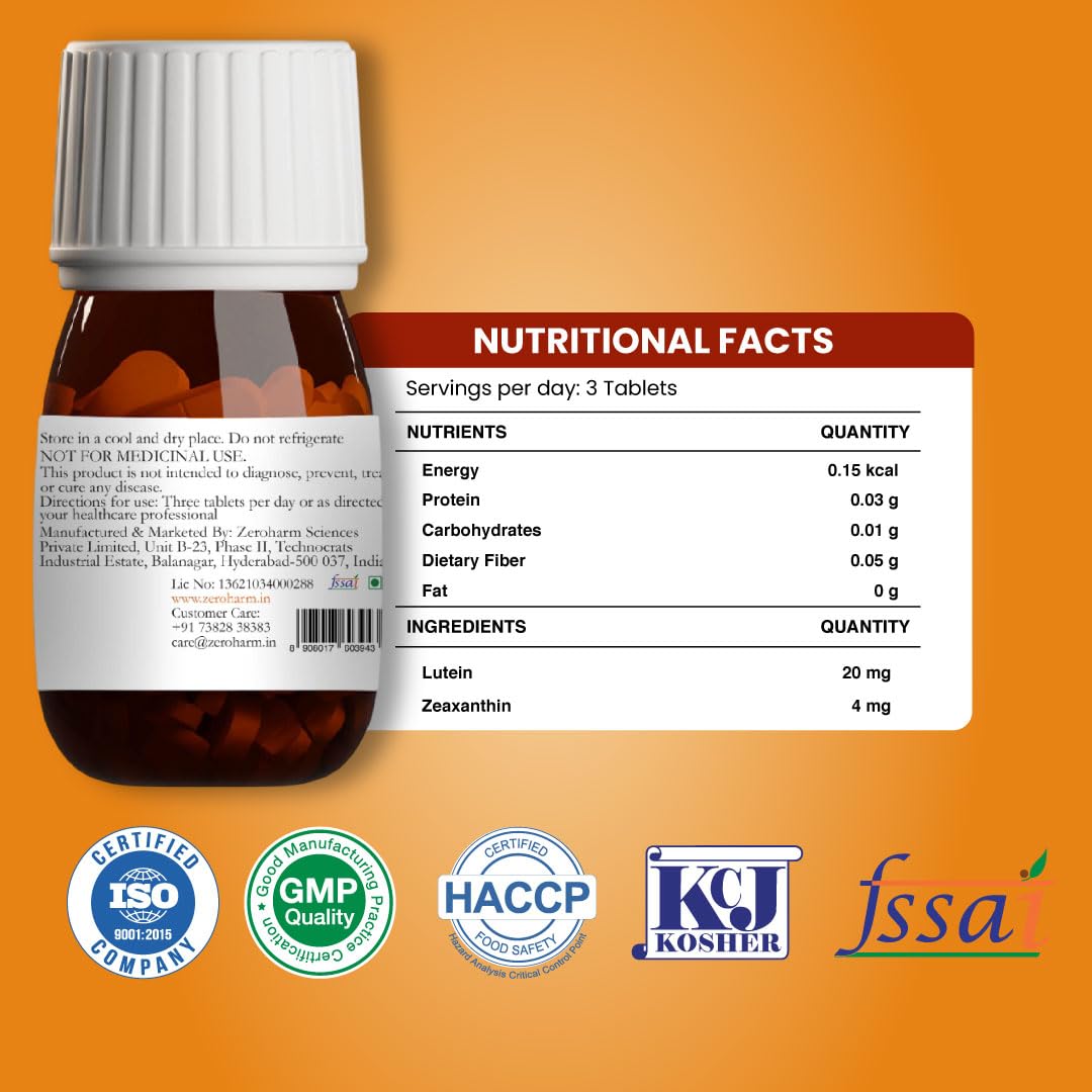 ZEROHARM Holo Eyeris | With Lutein, Zeaxanthin Eye Supplement | Supports Healthy Vision, Helps Reduce Digital Eye Strain & Fatigue from High Screen Time for Men, Women & Students - 90 Tablets